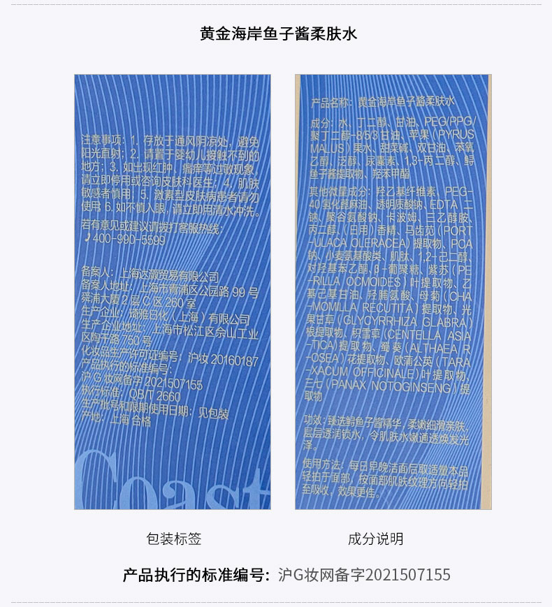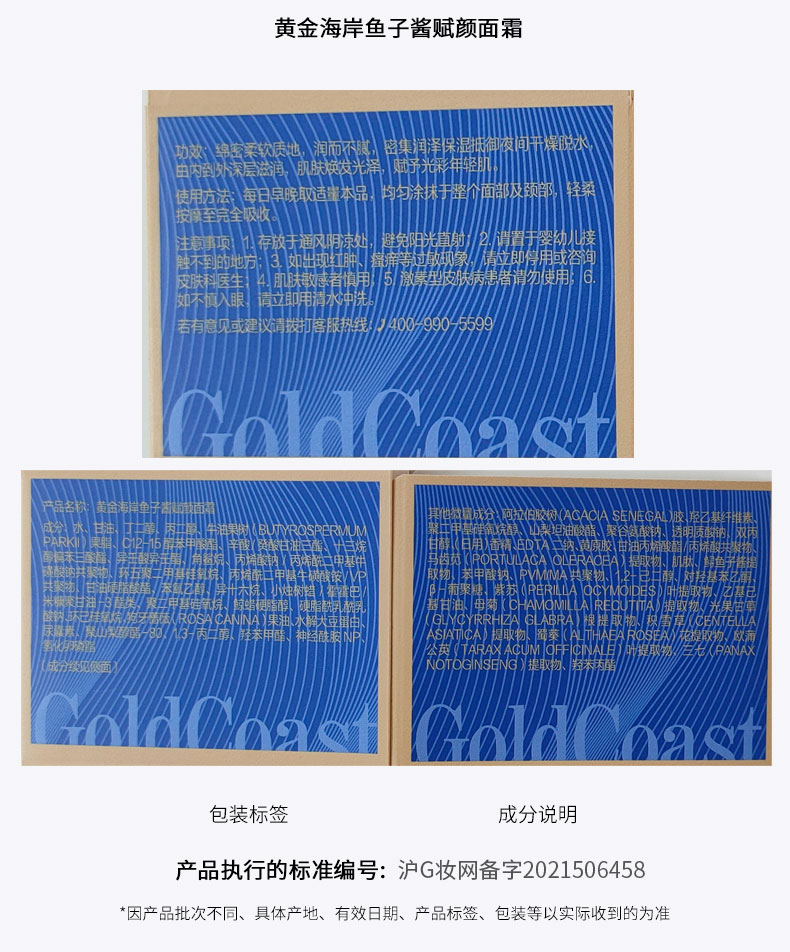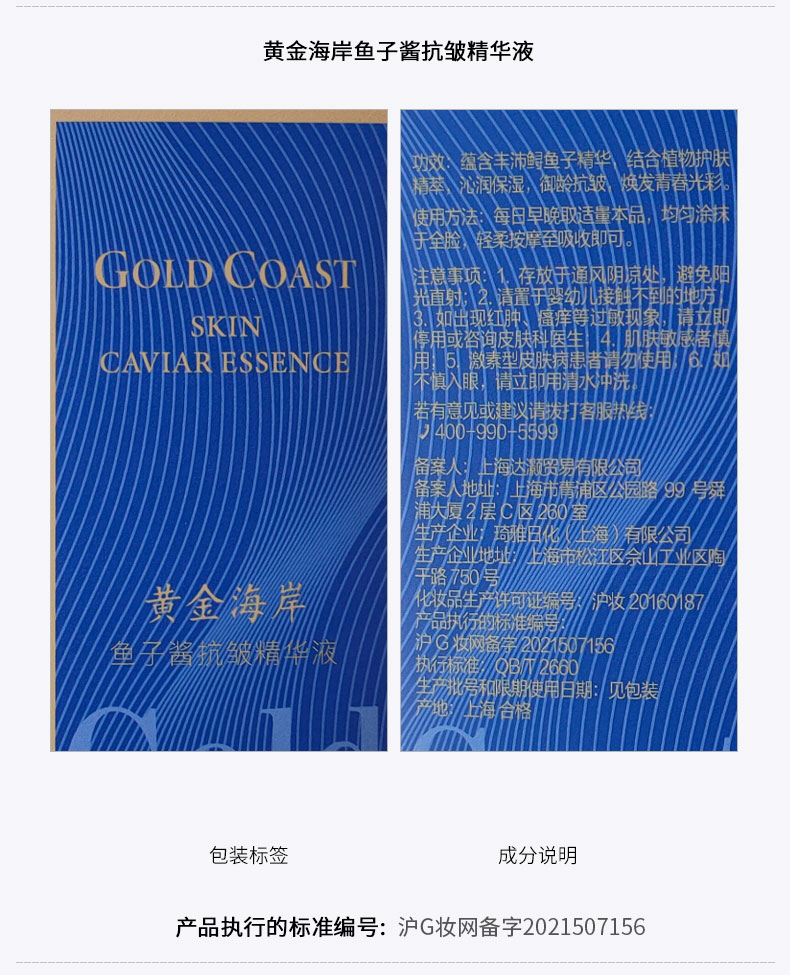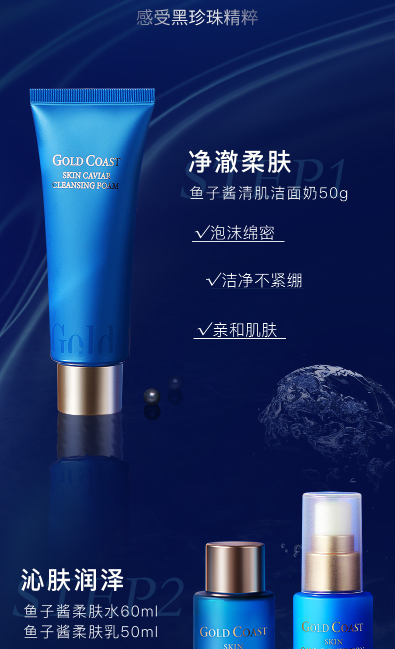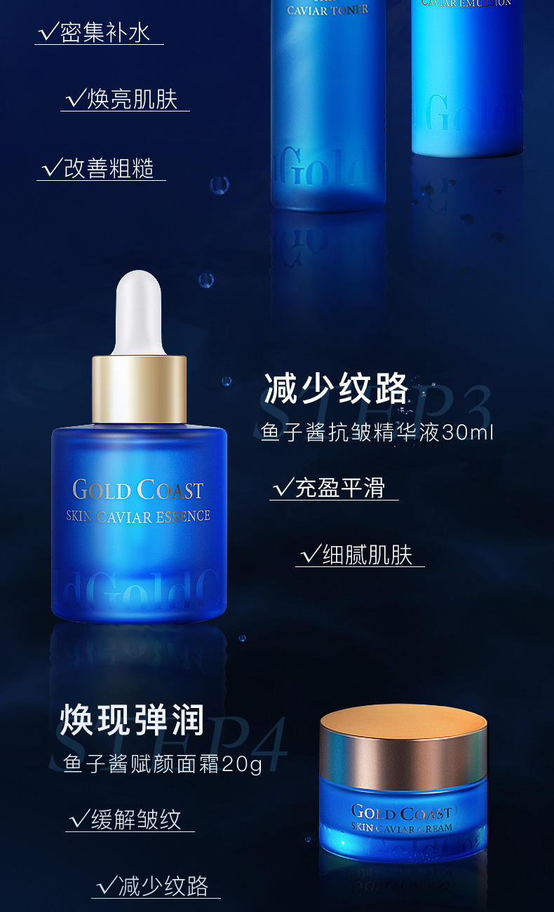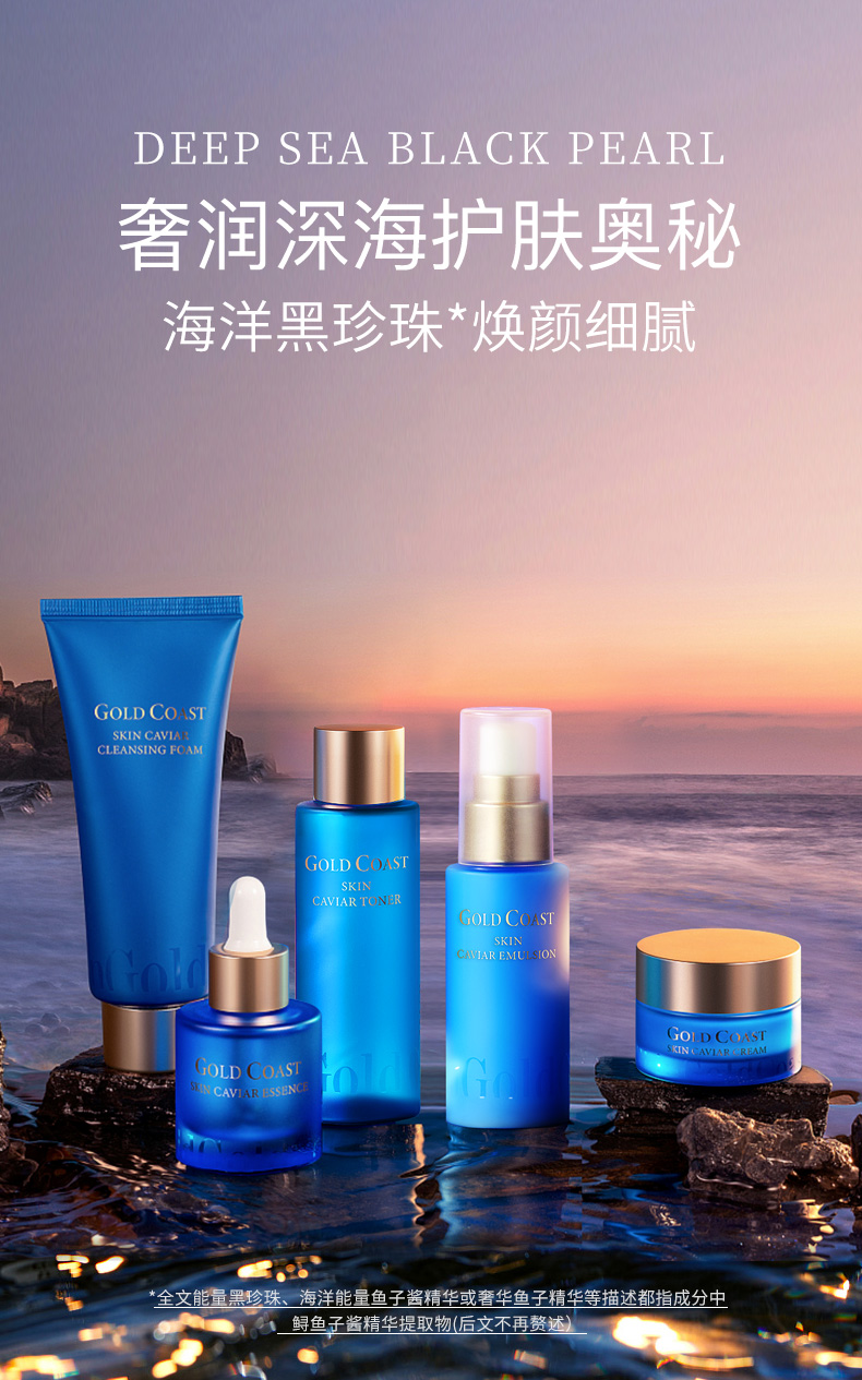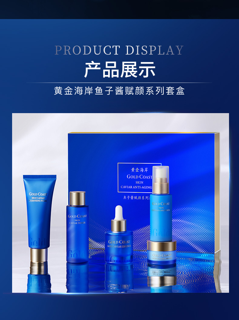 黄金海岸鱼子酱赋颜系列套盒(内含:正装精华30ml+洁50g+水60ml+乳50ml+面霜20g)*2