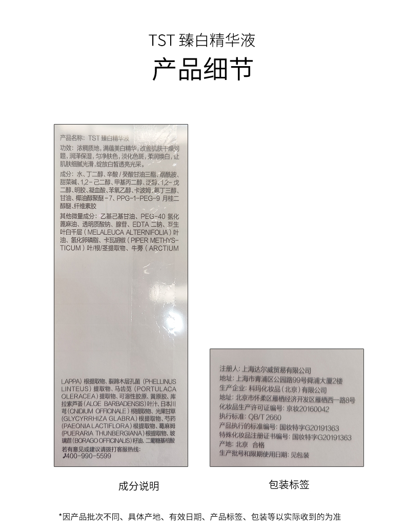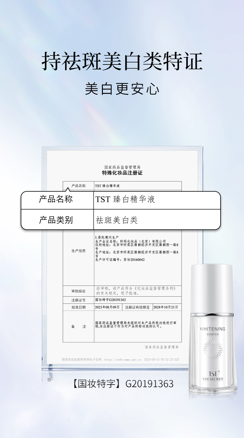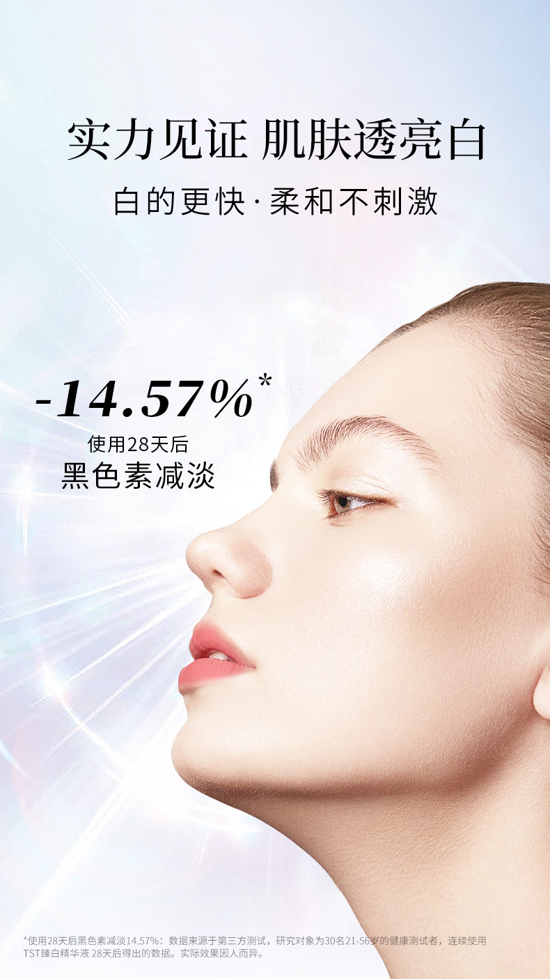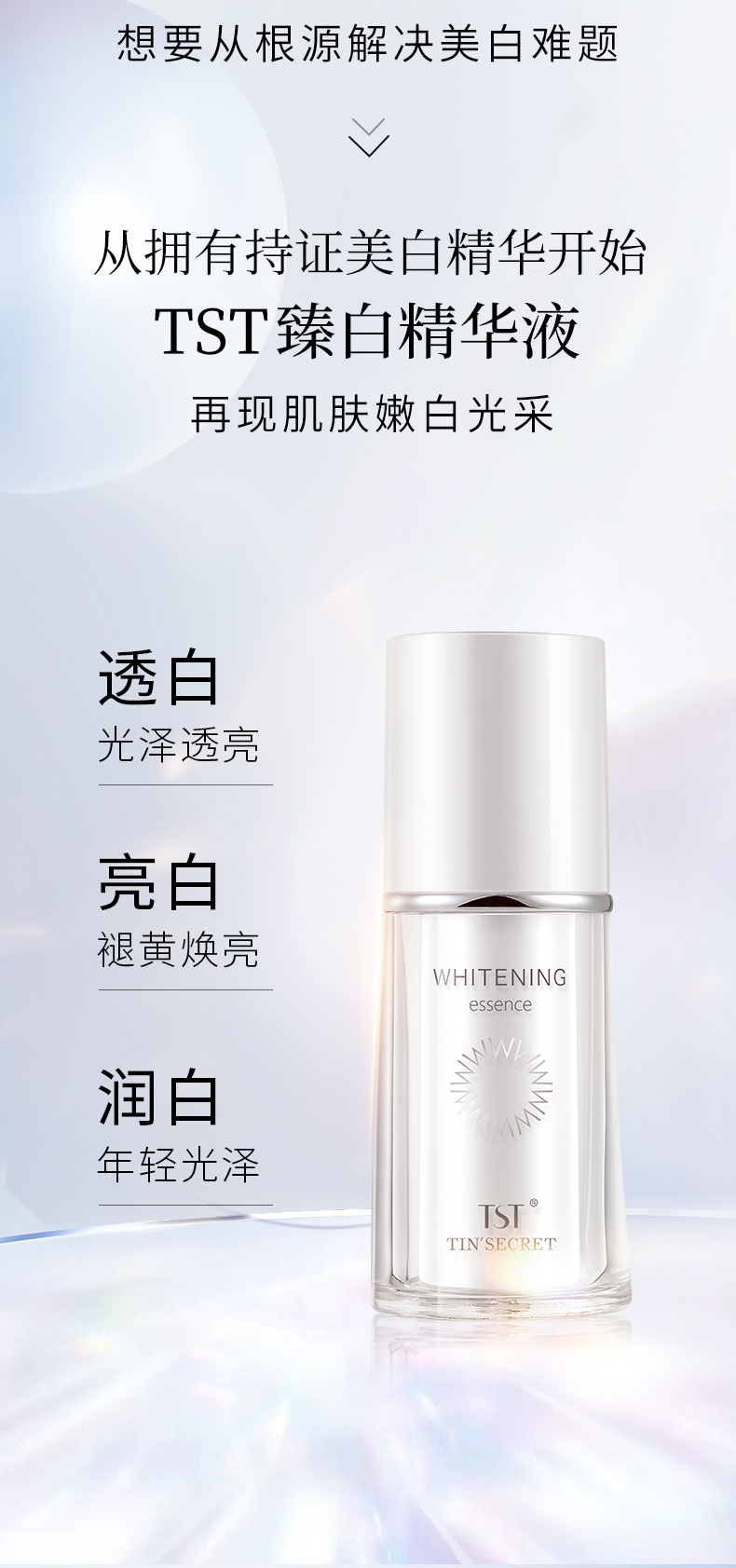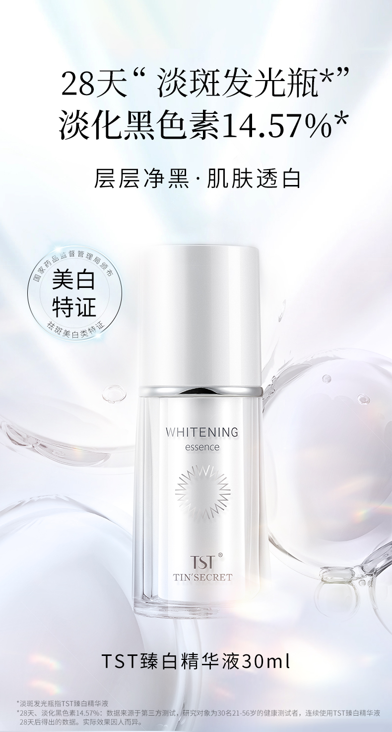TST臻白精华液30ml*2 赠送:泛醇精研修护面膜25ml单片装*5片+羽绒手拿包+TST白藜芦醇钻亮闪耀三联包*2