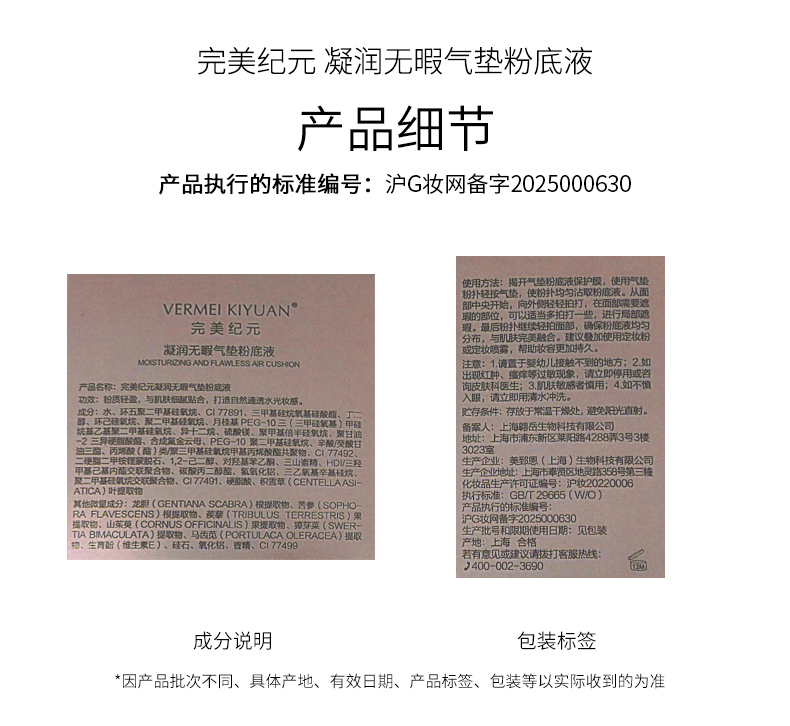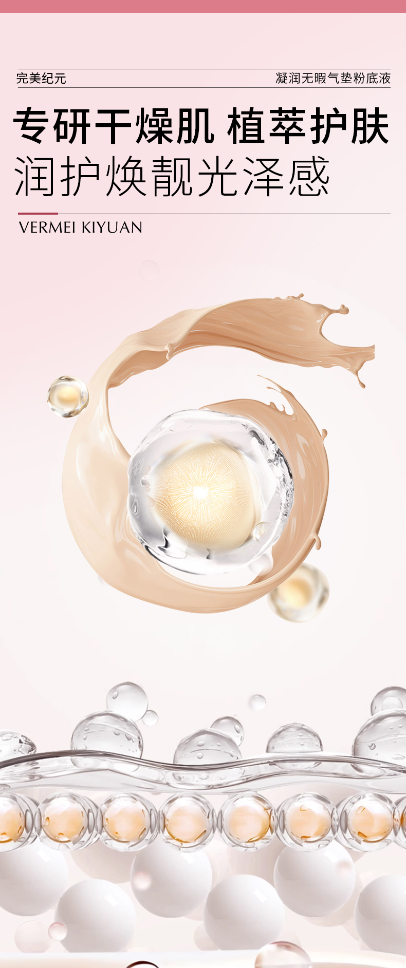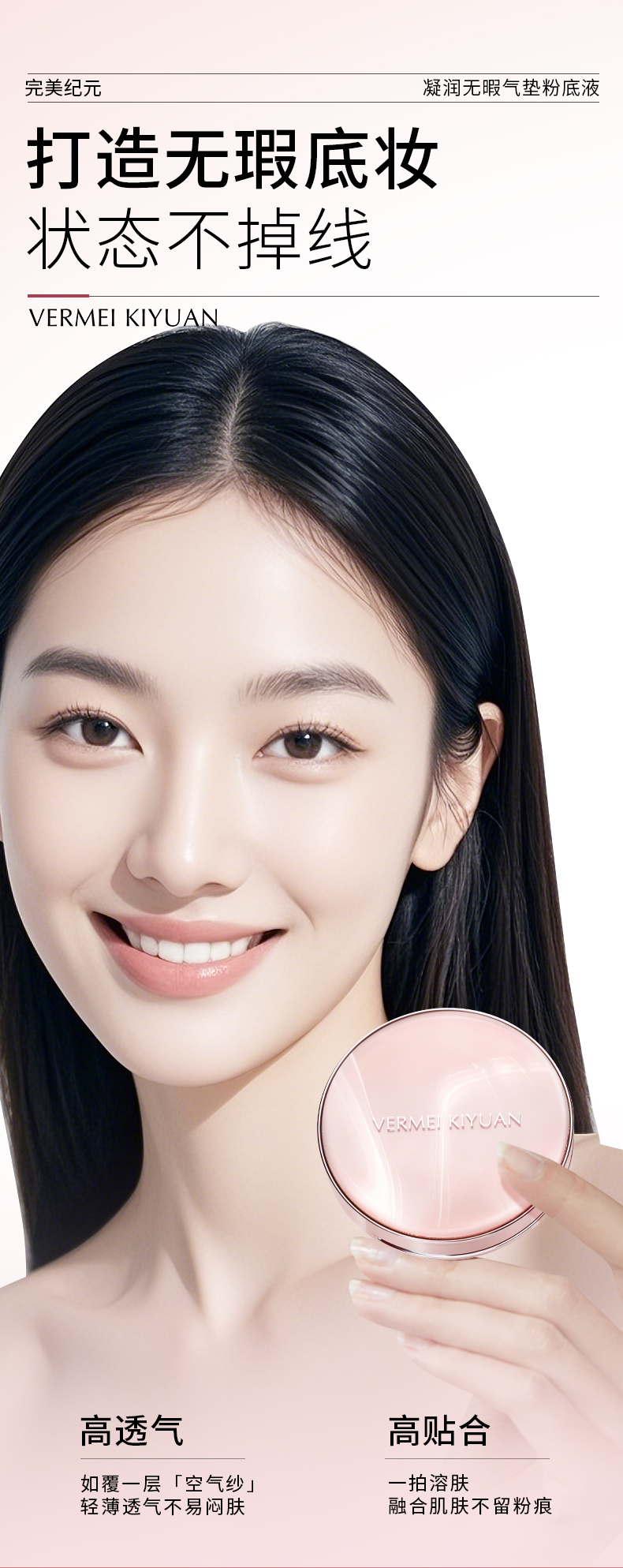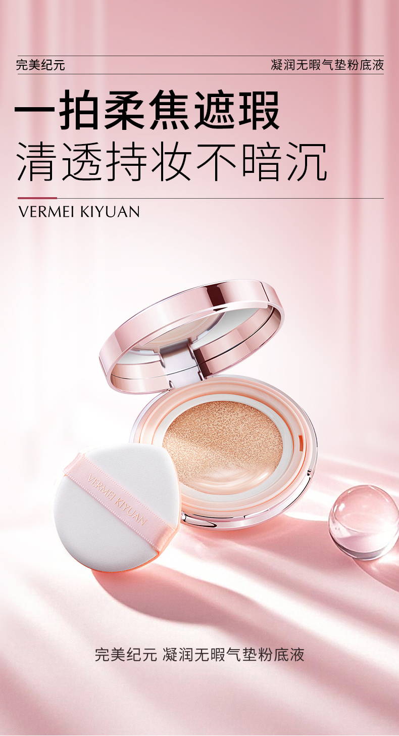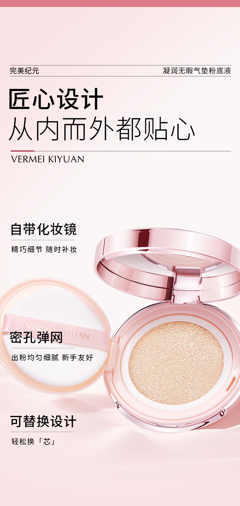 完美纪元 凝润无暇气垫粉底液(12g+12g替换芯)+庭魅沁润水漾润唇膏3.2g+庭魅果漾润唇油(2ml/支)02+粉扑(2个装)