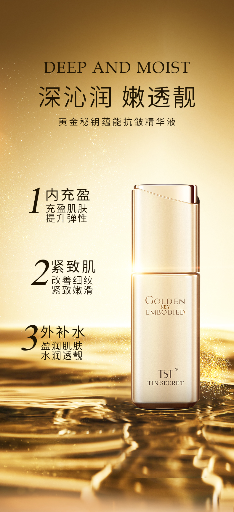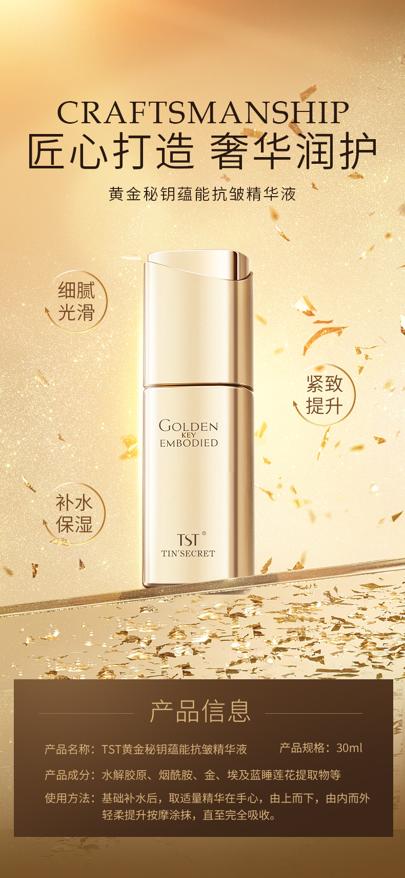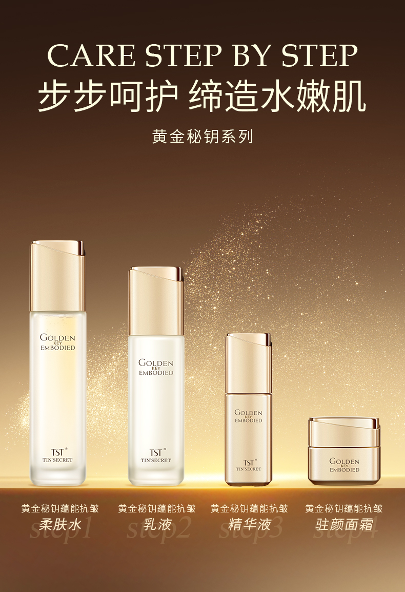 TST黄金秘钥蕴能抗皱精华液30ml*2 赠送:TST黄金秘钥蕴能抗皱柔肤水30ml+TST黄金秘钥蕴能抗皱乳液20ml+手提化妆包+TST活酵母虾青素抗皱修护面膜乳三联包*2