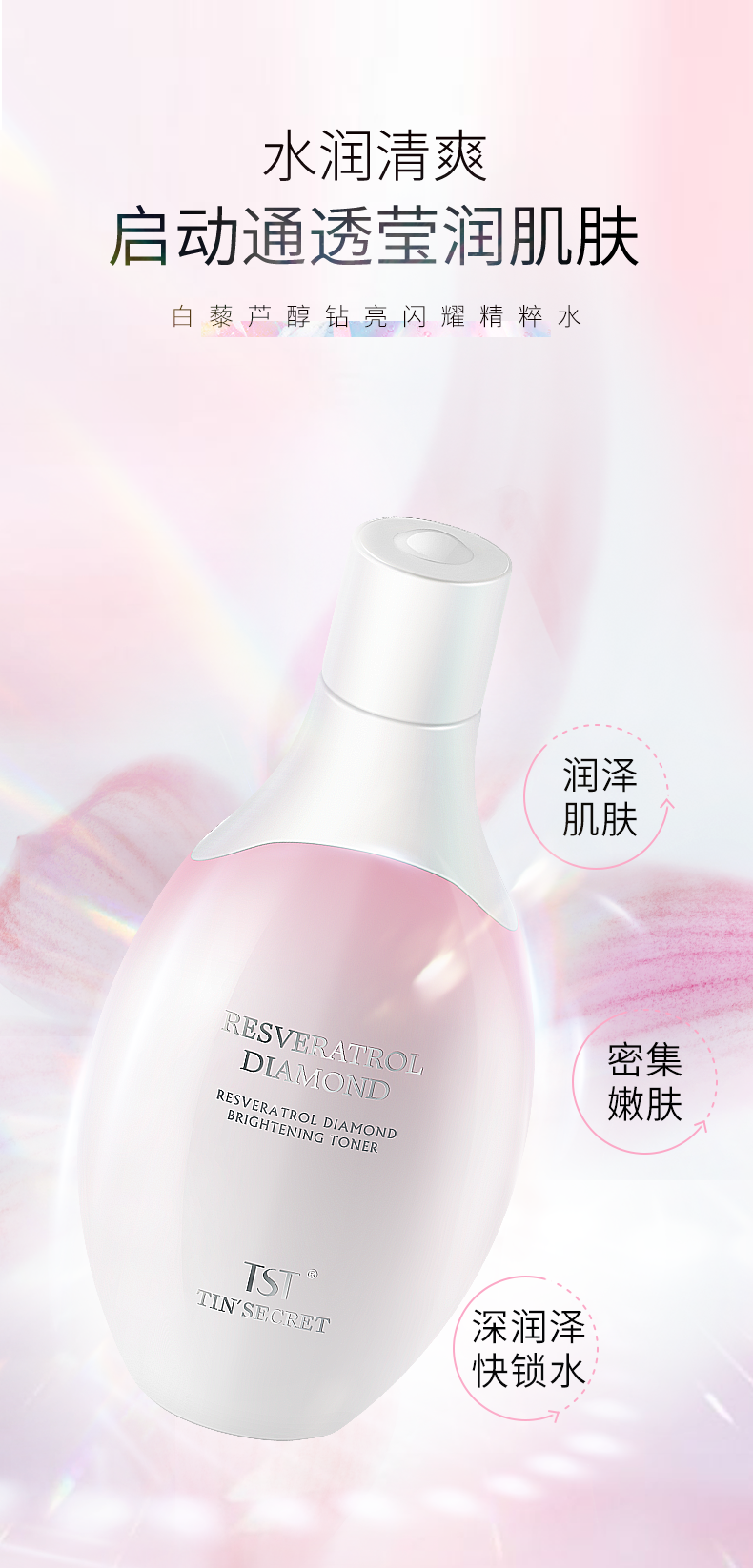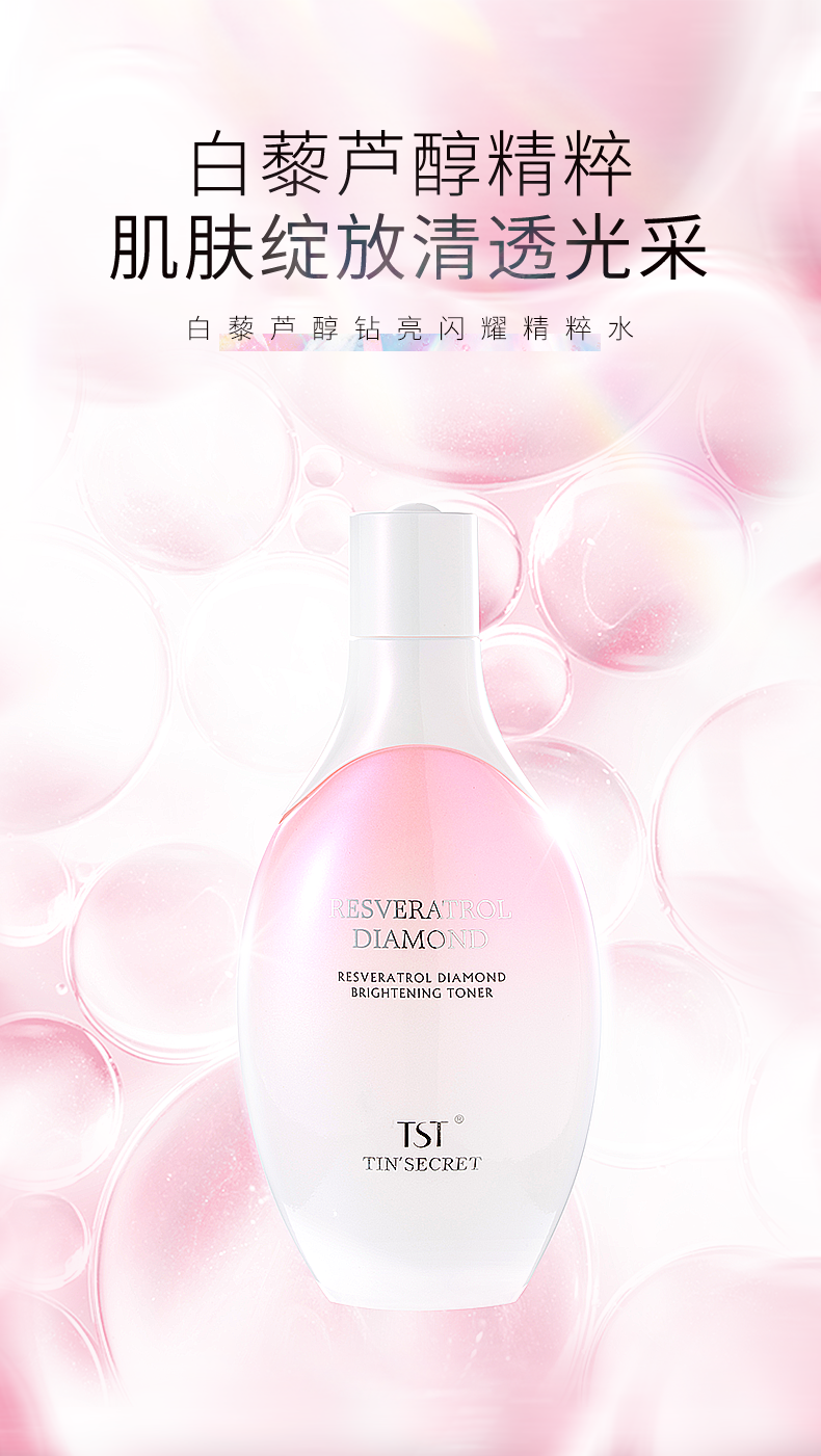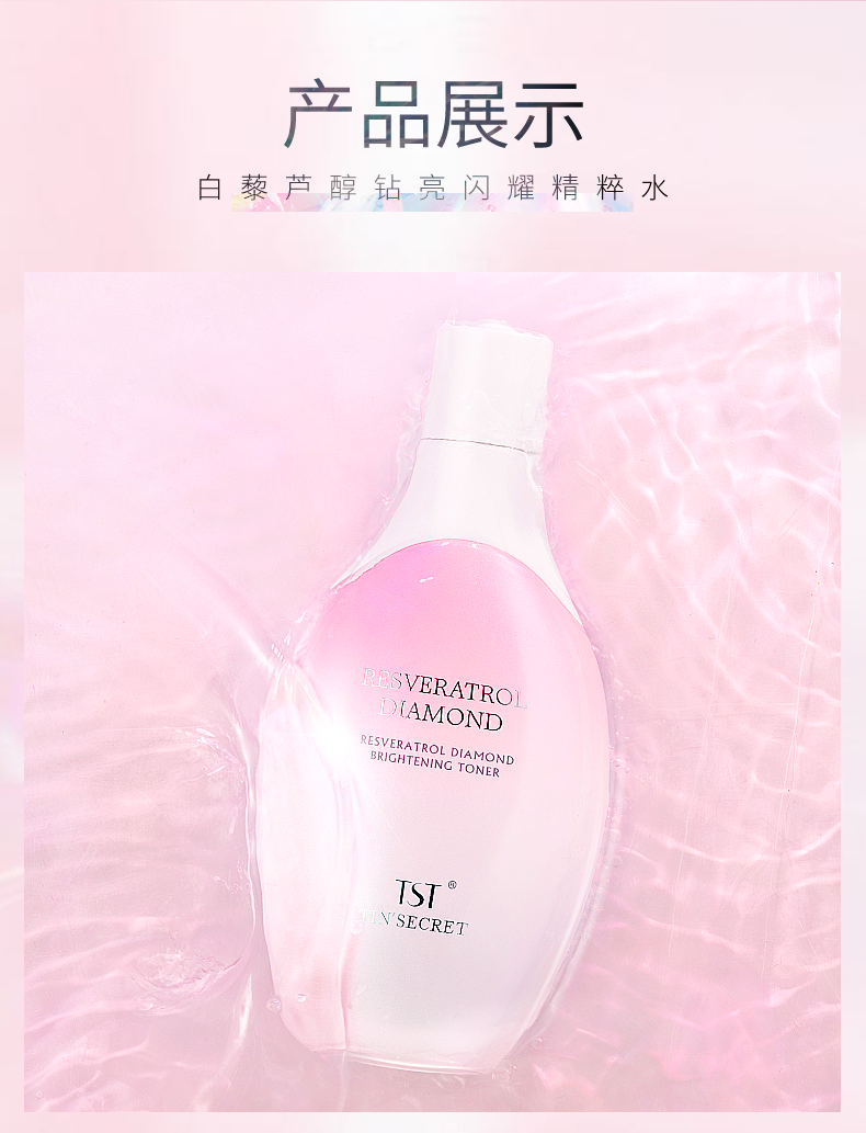 TST白藜芦醇钻亮闪耀精粹水120ml*2 赠送:泛醇精研修护面膜25ml单片装*5片+TST白藜芦醇钻亮闪耀三联包*2