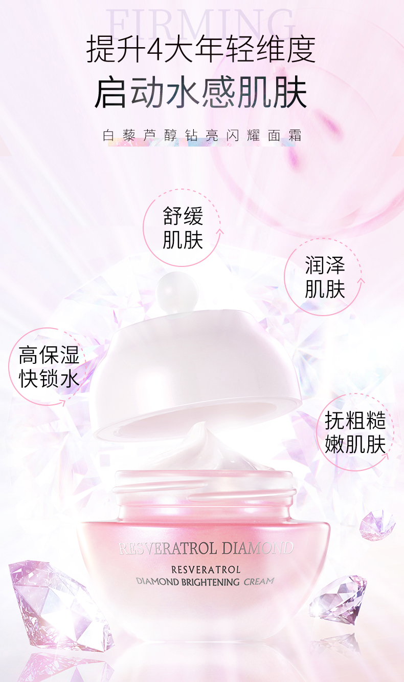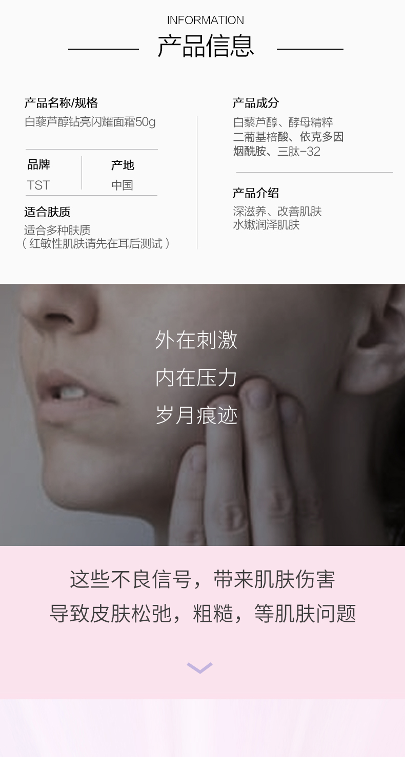 白藜芦醇钻亮闪耀面霜50g*2 赠送:修护精华霜(10g*5瓶)+手提化妆包+TST白藜芦醇钻亮闪耀三联包*2