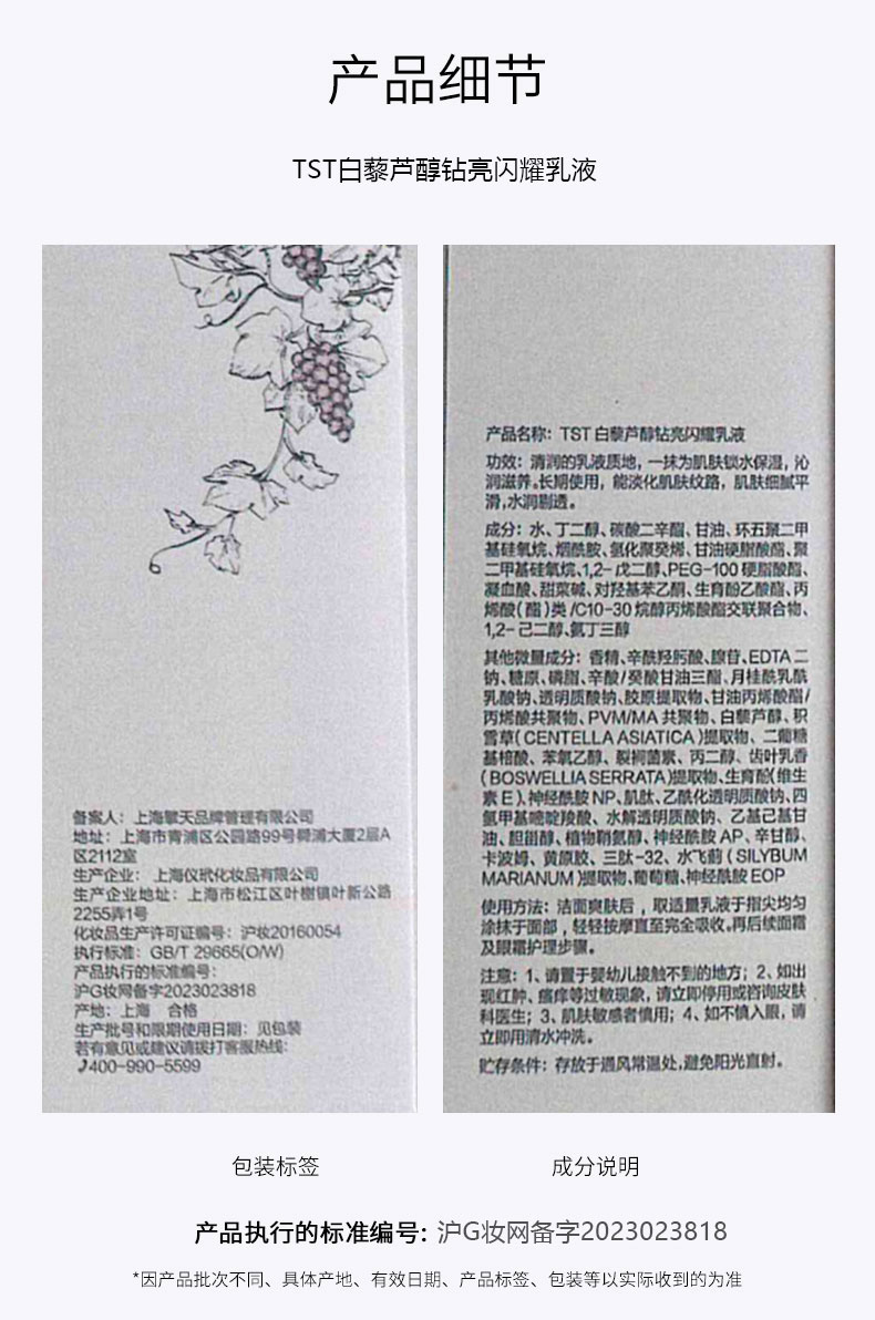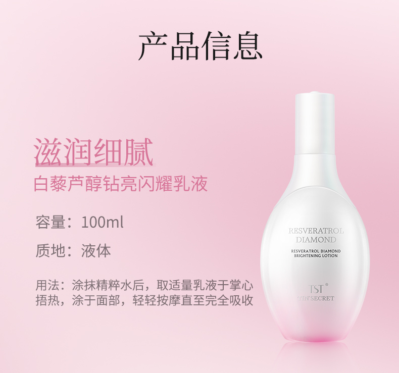 白藜芦醇钻亮闪耀乳液100ml*2 赠送:Coolella持妆防水眼线液 01(0.7ml/支)+Coolella持妆防水眼线液 02(0.7ml/支)+热敷毛巾+TST白藜芦醇钻亮闪耀三联包*2