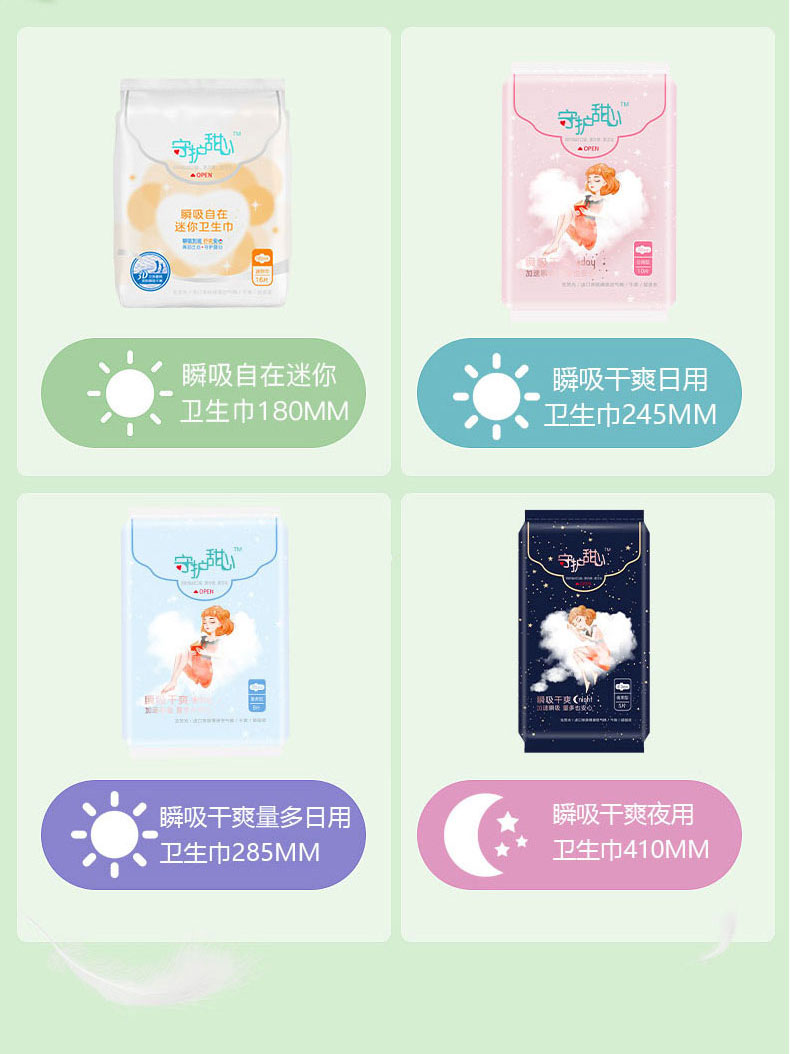 瞬吸干爽245mm*8包+285mm*4包+夜用410mm*4包+迷你180mm*4包 共计196片【焕新季】
