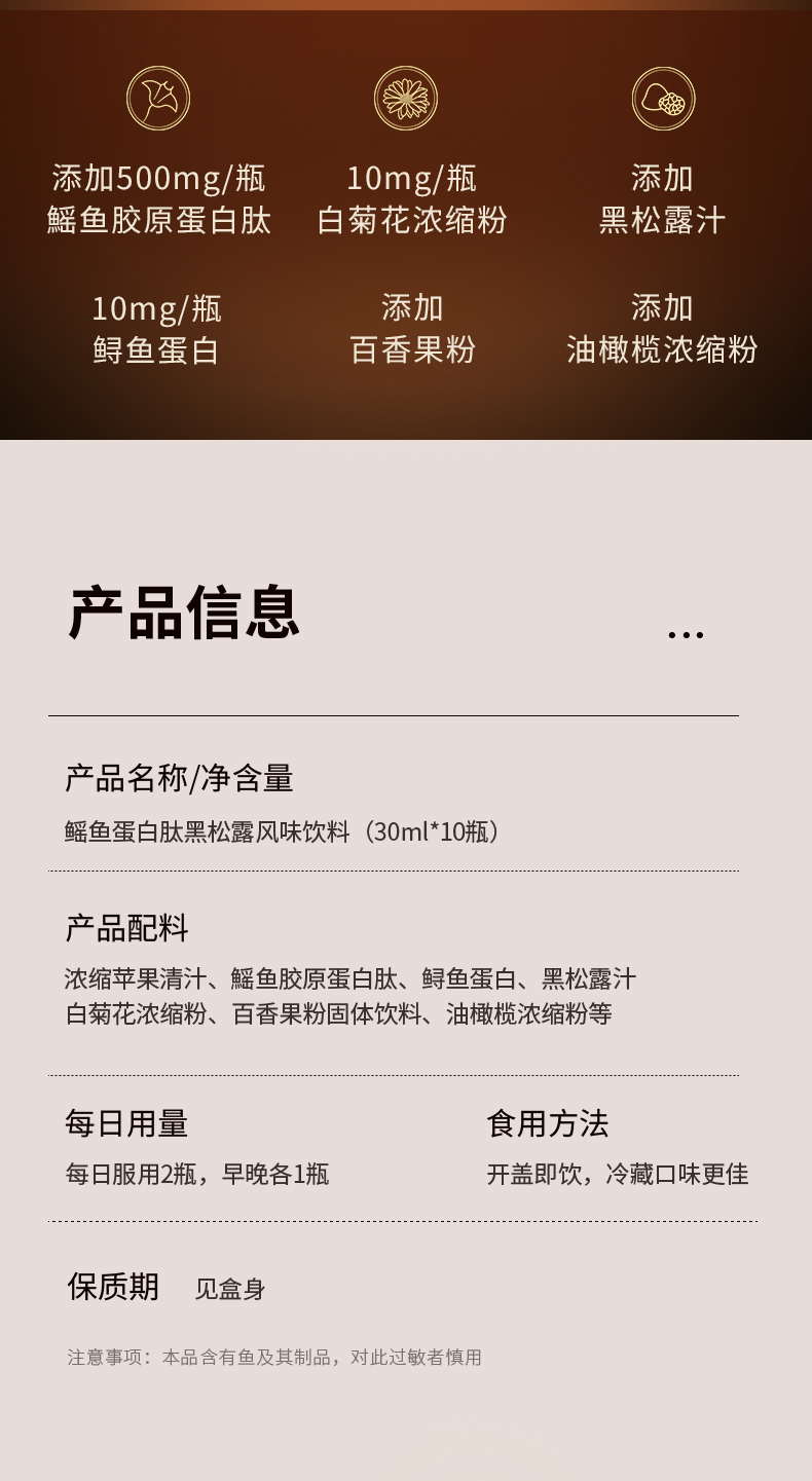 全日好 鳐鱼蛋白肽黑松露风味饮料(30ml*10瓶)*3