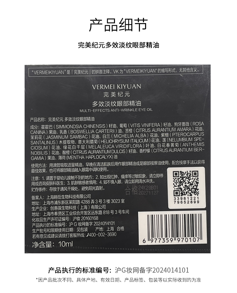 完美纪元 多效淡纹眼部精油10ml *2 赠送:完美纪元 多效淡纹眼部精油1ml*3